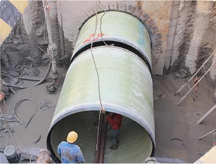 玻璃鋼夾砂頂管(強力型)以樹脂和玻璃纖維作為主要原材料取代傳統水泥混凝土中的水泥及水,與不同顆粒級配石英砂及各類填料、添加劑凝結成的一種復合材料。與傳統定長工藝頂管比較,具有強度更高、承受頂力更高、安全性等特點,適用于長距離頂管,屬于玻璃鋼頂管新的替代產品。